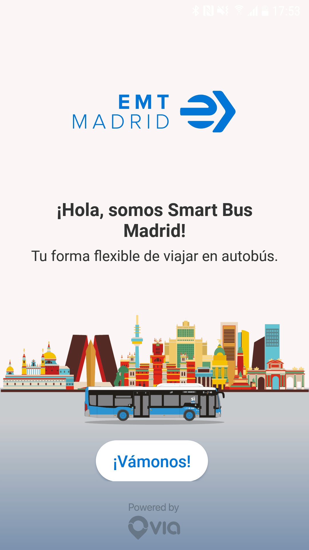 A white-label mobile application titled "EMT Smart Bus Madrid"