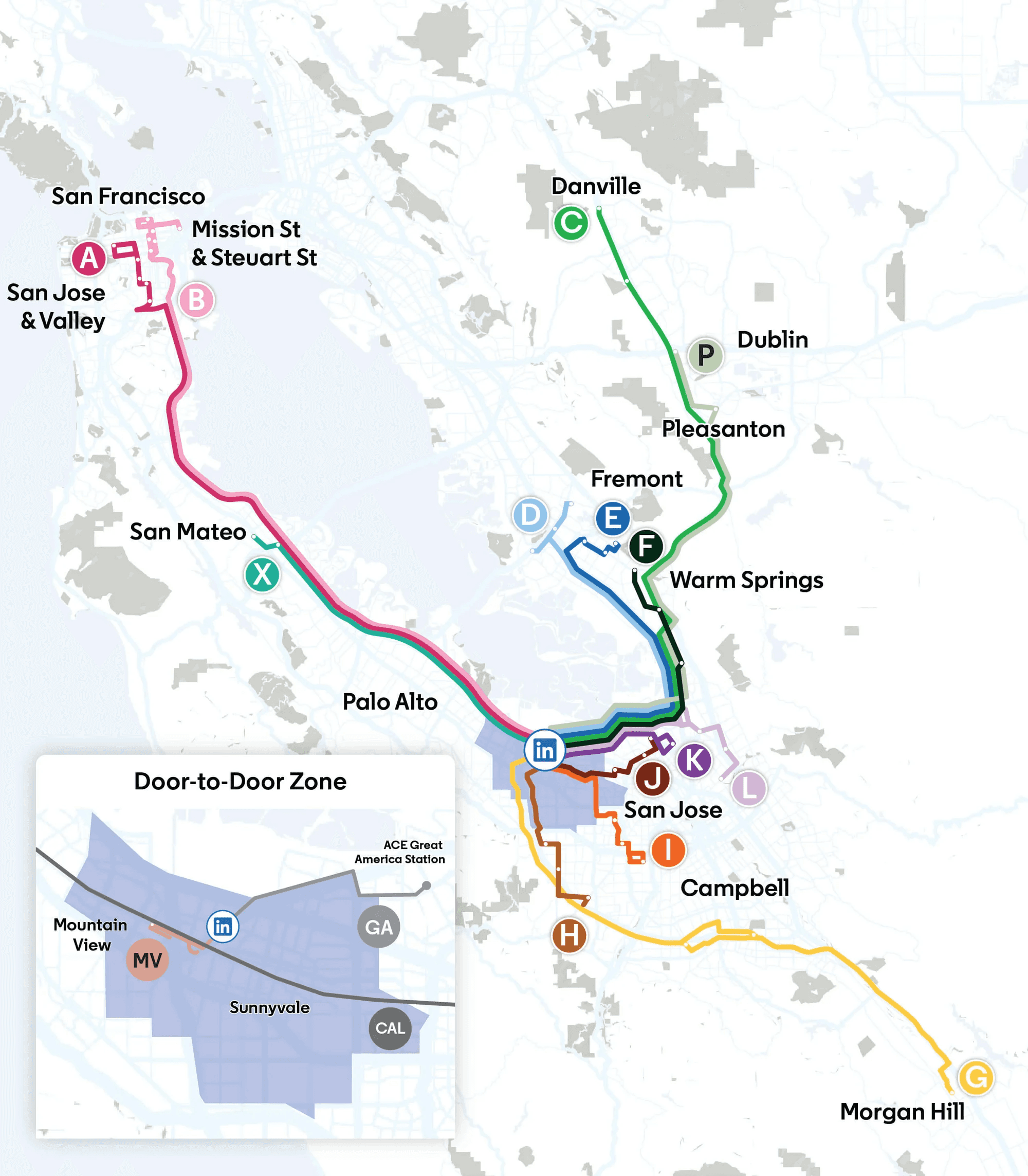 In the corporate world, there are few names bigger than LinkedIn. With over 300 million active users, it's no surprise that the company requires a team the size of a small city to keep the platform running. With 20,000+ employees, LinkedIn's headquarters spans over 29 acres in Sunnyvale, California. One of the toughest logistical issues facing LinkedIn employees is the commute. For employees, the daily trek to Sunnyvale can feel endless due to traffic, wasting hours on the road instead of being productive in the office or enjoying time at home with family. The only solution to this would be to move closer to SunnyVale, which is easier said than done, given the current Bay Area housing market. Driving is also wholly harmful to the company, as a driving workforce requires building and maintaining thousands of parking spots and reduces working time due to long commutes.